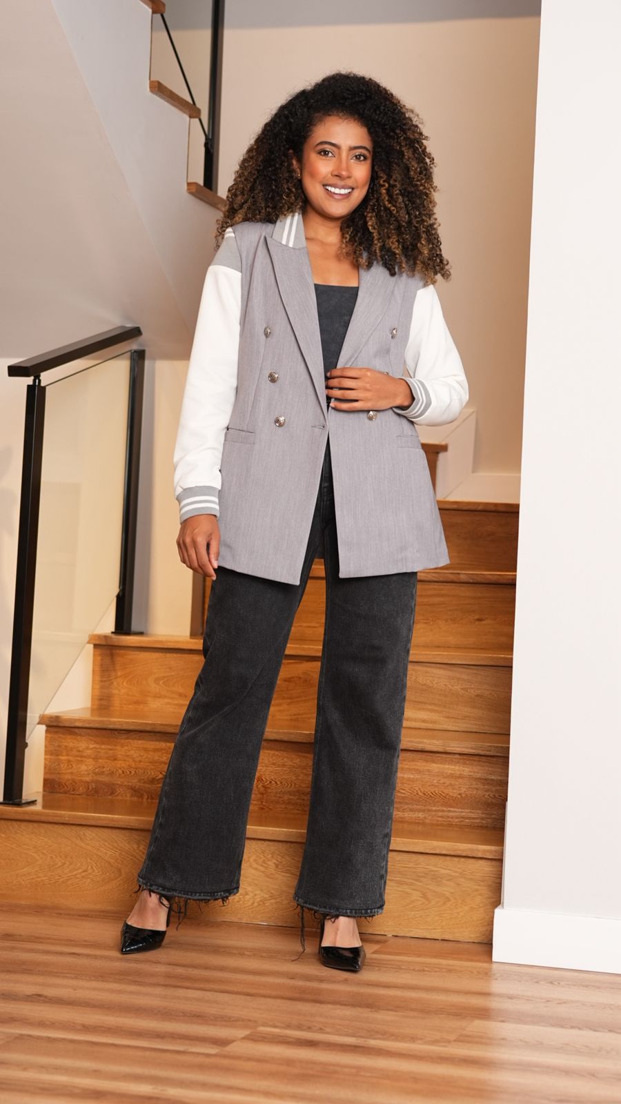 Rib mangas, hombreras, forro interno. Horma perfecta